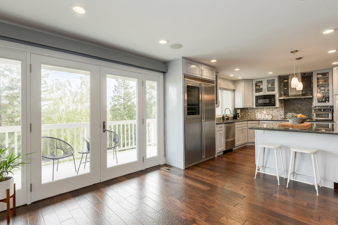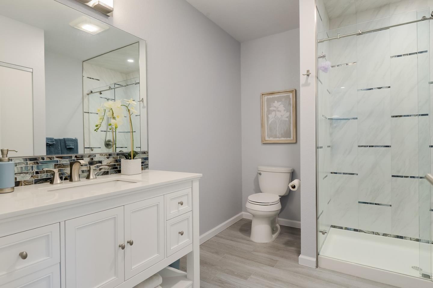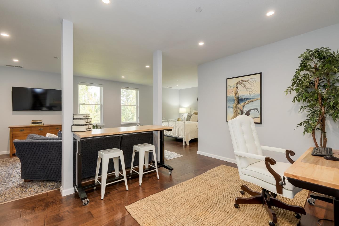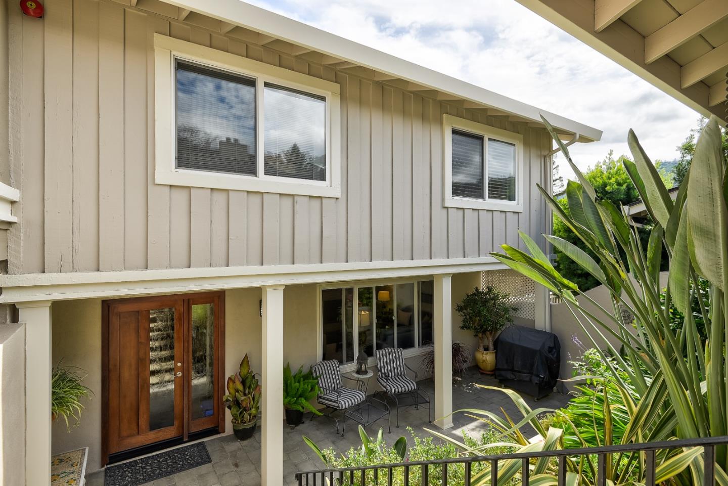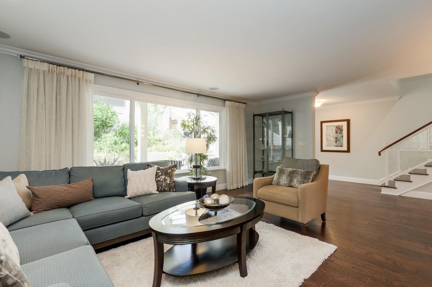 Rare Find in Saratoga Oaks! One of the largest units in this development! A spacious three-level floor plan thoughtfully designed with approximately 2,950 sq. ft. - 4 bedrooms and 3.5 bathrooms. The top-floor primary suite includes a cozy fireplace, spa-like bathroom with soaking tub, walk-in shower, a spacious walk-in closet, and a private balcony with beautiful views. Included on this floor are 2 additional bedrooms and a hallway bath, and enclosed laundry area. The finished basement, renovated in 2019, has an open floor plan for extended stays with guests, a game room or for office use. Equipped with a meticulous full bathroom. The gourmet kitchen, remodeled in 2011, features high-end appliances, a Liebherr dual-zone wine refrigerator, a Fisher & Paykel Dishwasher, dual convection, and a professional-grade gas cooktop. Contiguous counter space, walk-in pantry, and additional computer work space, modern conveniences for busy, modern-day times. Located in a lush 25-acre community, with 637 mature trees, access to top-rated Saratoga schools and a stroll away from Saratoga Village and Hakone Gardens. Ask about the private walking bridge to downtown for food, libation or shopping. Great opportunity to change up the hectic life-style and escape to the hills!